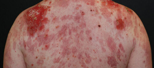 Schlaffe Blasen und Erosionen bei einem Patienten mit PV.